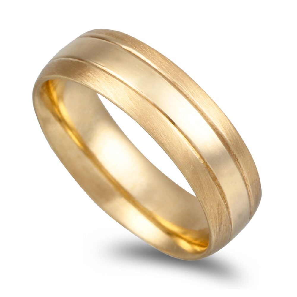Aliança em ouro franco de 19,2kl com acabamento acetinado nas laterais e no centro acabamento polido.