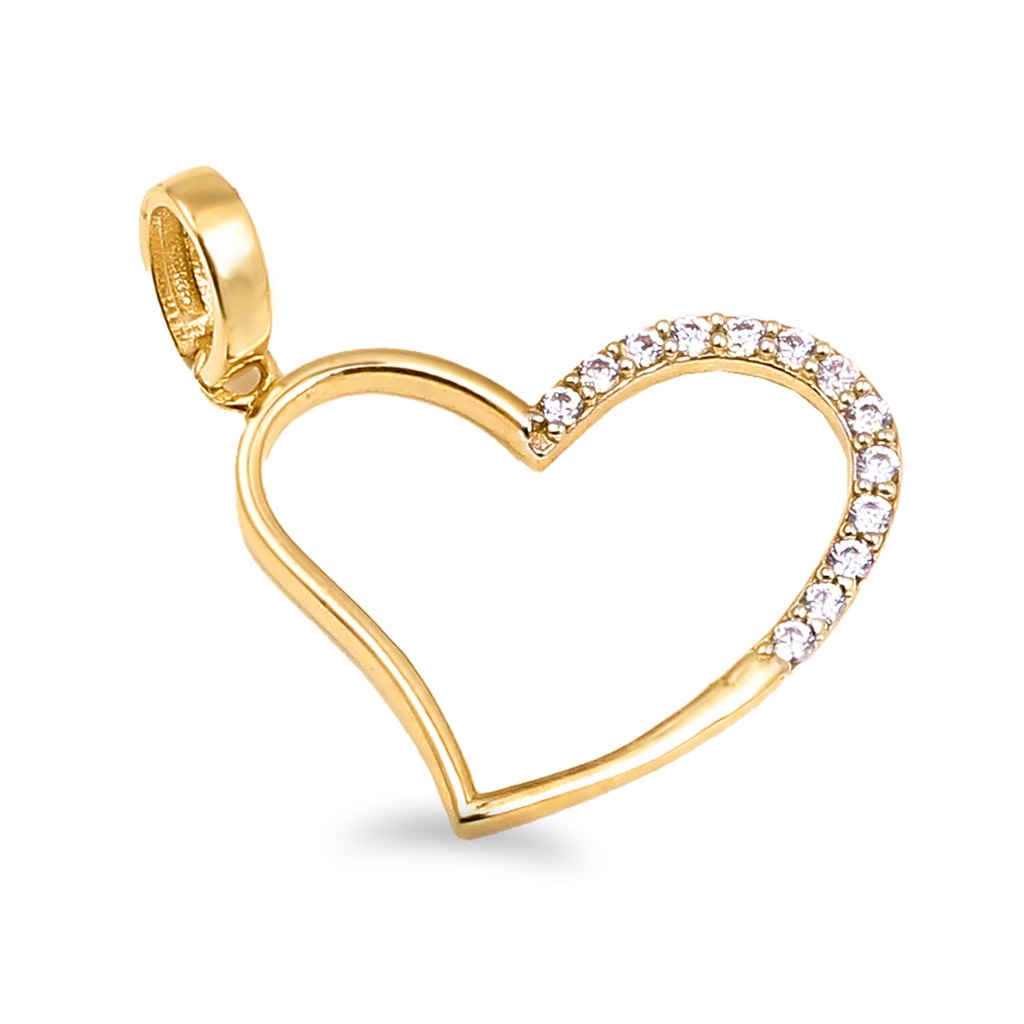 Medalha coração em ouro de 19,2kl, com metade do aro cravado de zircónias.