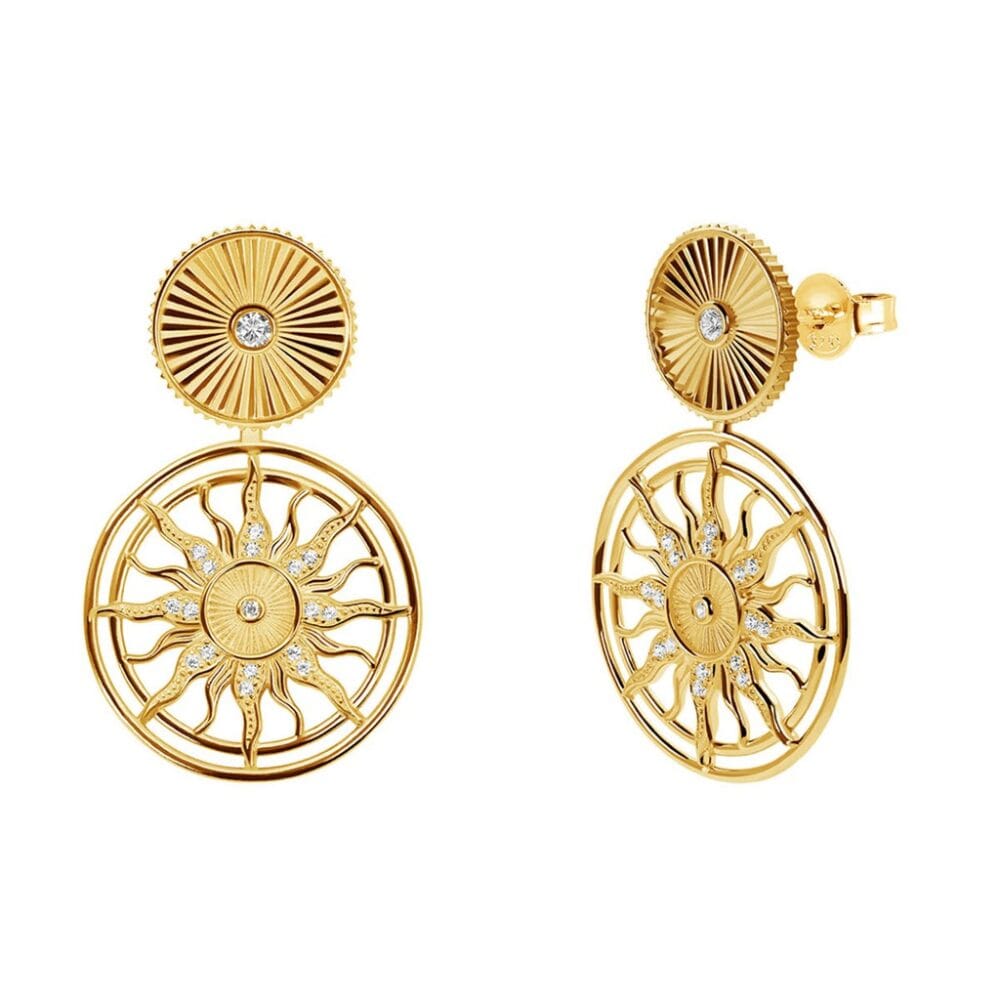 Brincos Estrela Mãe em prata de lei, com banho dourado e zircónias. Um conjunto brilhante inspirado em todas as Mães que simbolizam a luz, o amor, o conhecimento e a perfeição. A maior estrela da nossa constelação!